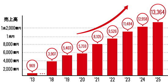 お取引に満足いただけるお客様が増え続けた結果、売上は年々増加しています。これからも、安心で迅速なお取引で、お客様の期待に応えます!